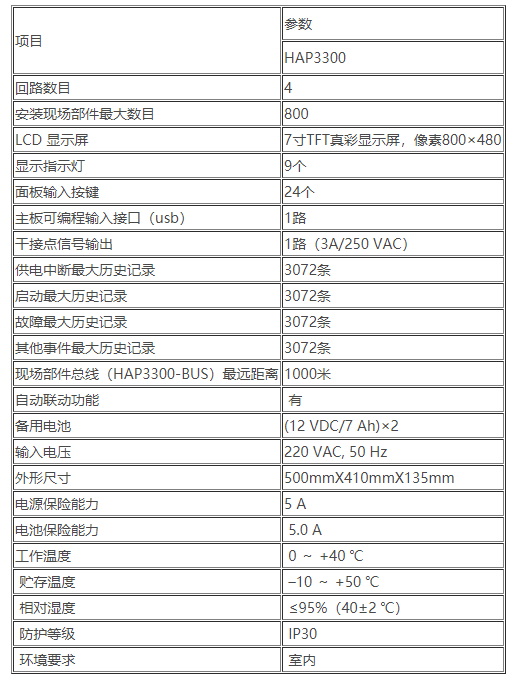 三、HAP3300消防設備電源狀態監控器性能參數