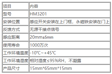 二、HM3201門磁開關技術參數
