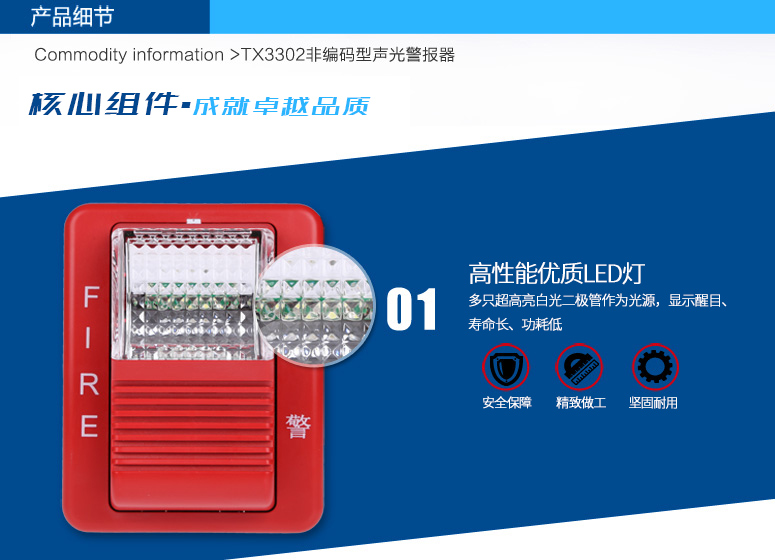 TX3302聲光警報器(以下簡稱聲光警報器),是一種安裝在現(xiàn)場的聲光報警設(shè)備。采用高亮度的LED光源,聲光警報器啟動后發(fā)出強烈的聲光報警信號,以達到提醒現(xiàn)場人員注意的目的。